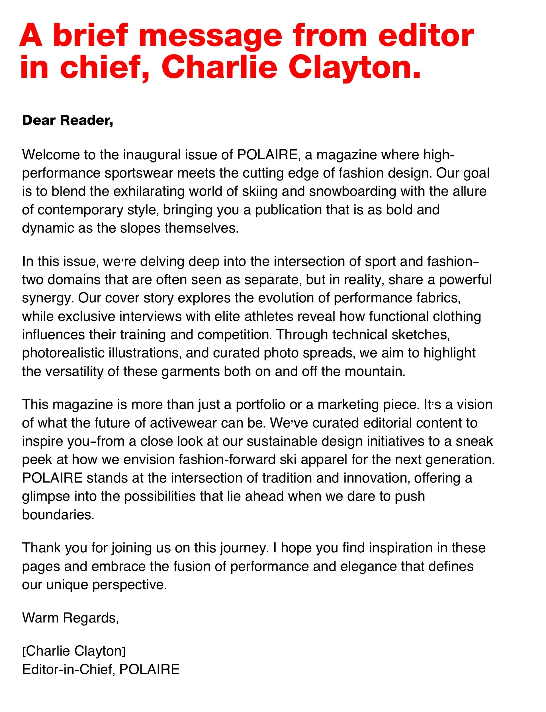 Charlie Clayton - Mock freestyle skiing fashion magazine using photorealistic renders of fashion illustrations.